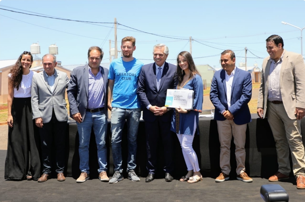 propio barrio donde las familias recibieron sus llaves, estuvieron presentes además el intendente de la ciudad, Leonardo Stelatto, el presidente del Instituto Provincial de Desarrollo Habitacional (IPRODHA), Juan Carlos Pereira, y la secretaria de Hábitat de la Nación, Micaela Villaverde. Las autoridades pudieron recorrer algunas de las casas y conocer las historias de vida de sus flamantes propietarios.