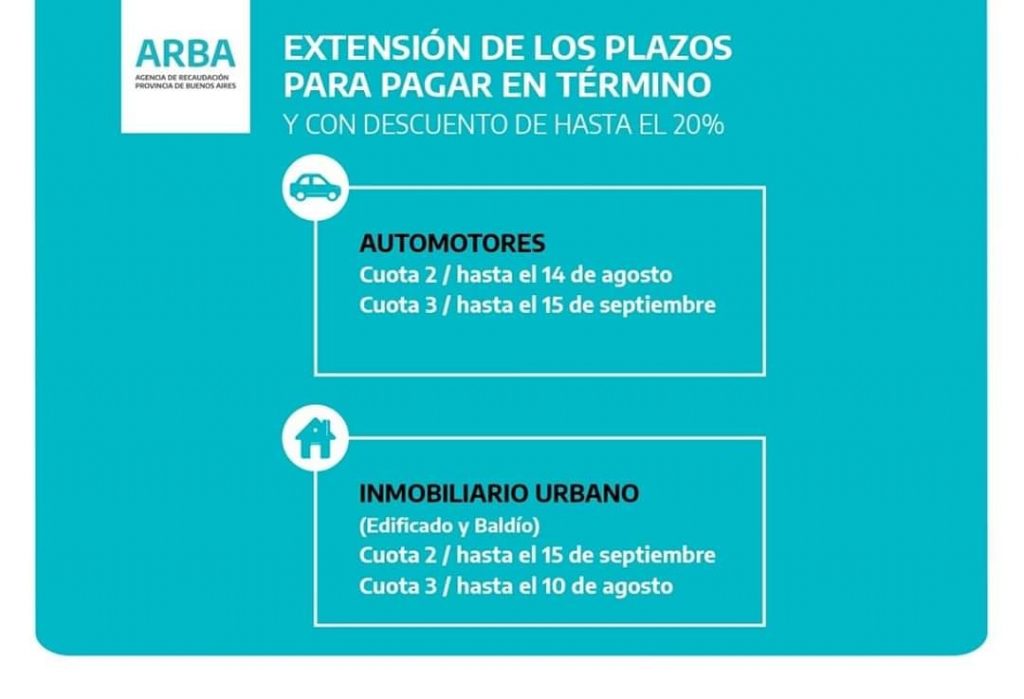 En declaraciones radiales, el director ejecutivo de ARBA, Cristian Girard, explicó que «hoy operaba el vencimiento de la cuota 3 de la patente y lo vamos a extender en 60 días» por lo que los contribuyentes «tendrán más tiempo para abonar el impuesto sin perder los beneficios por pago en término».