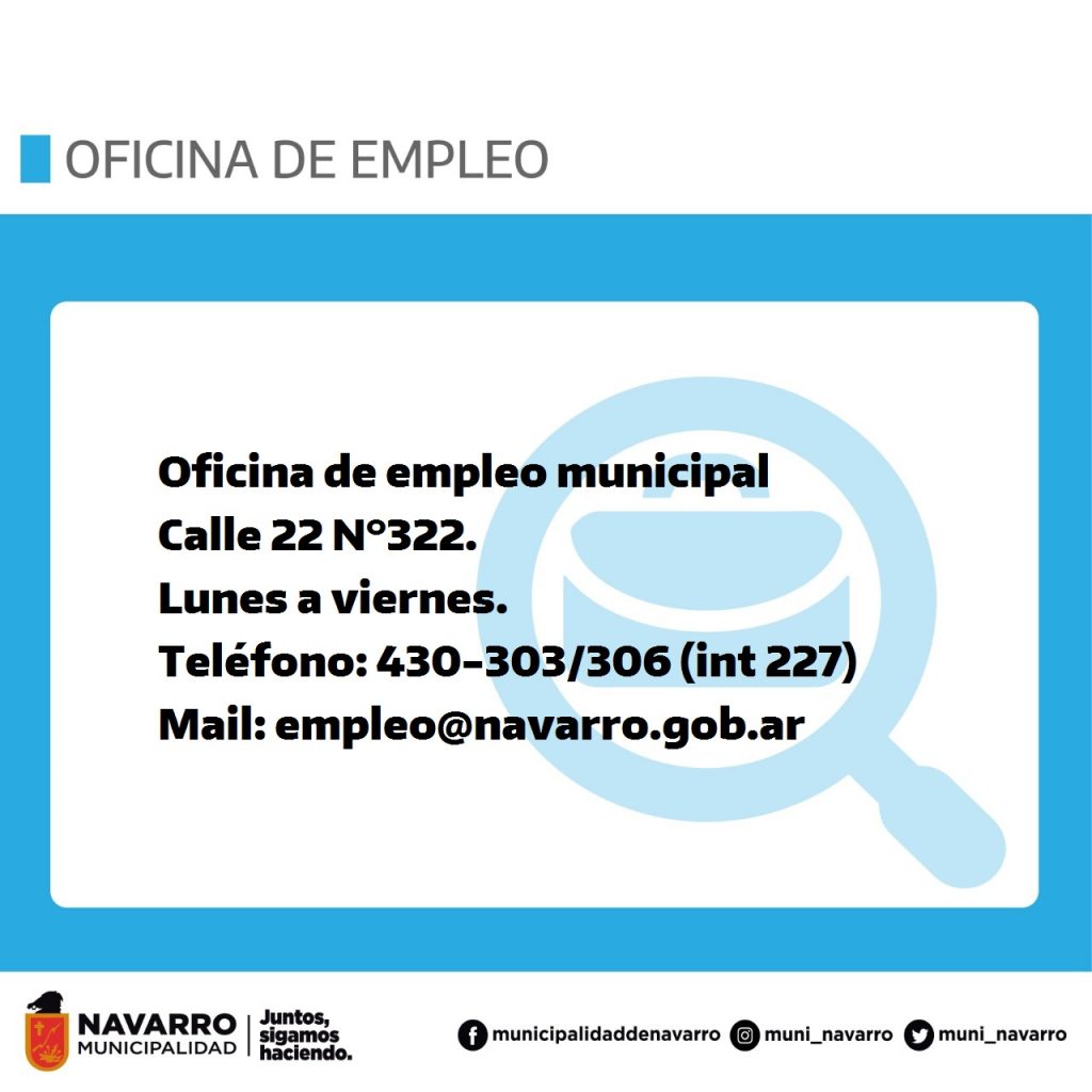 La Municipalidad de Navarro, a través de la Dirección de Promoción Social y Empleo, invita a quienes hayan presentado sus datos o Curriculum Vitae, con anterioridad, para actualizar los mismos.
