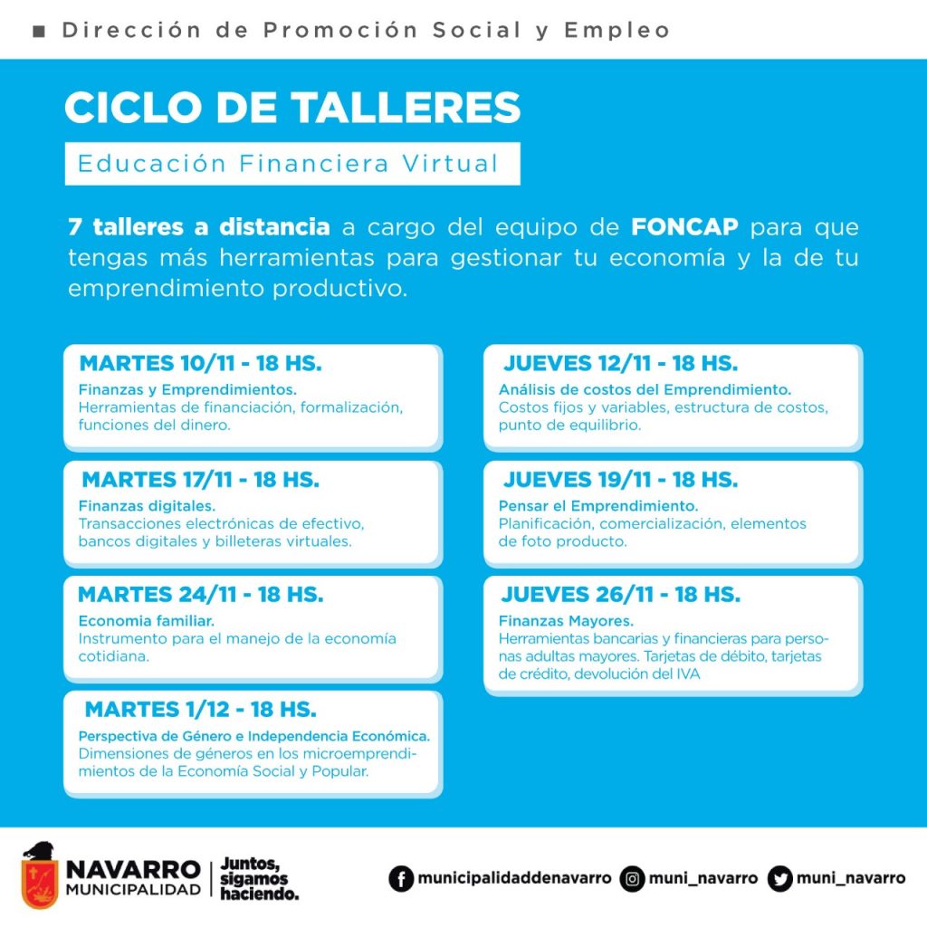 La Oficina de Empleo, informa que desde el próximo martes 10 del corriente mes, comenzarán capacitaciones virtuales del FONCAP, (Fondo Nacional del Capital Social) del Ministerio de Economía.
