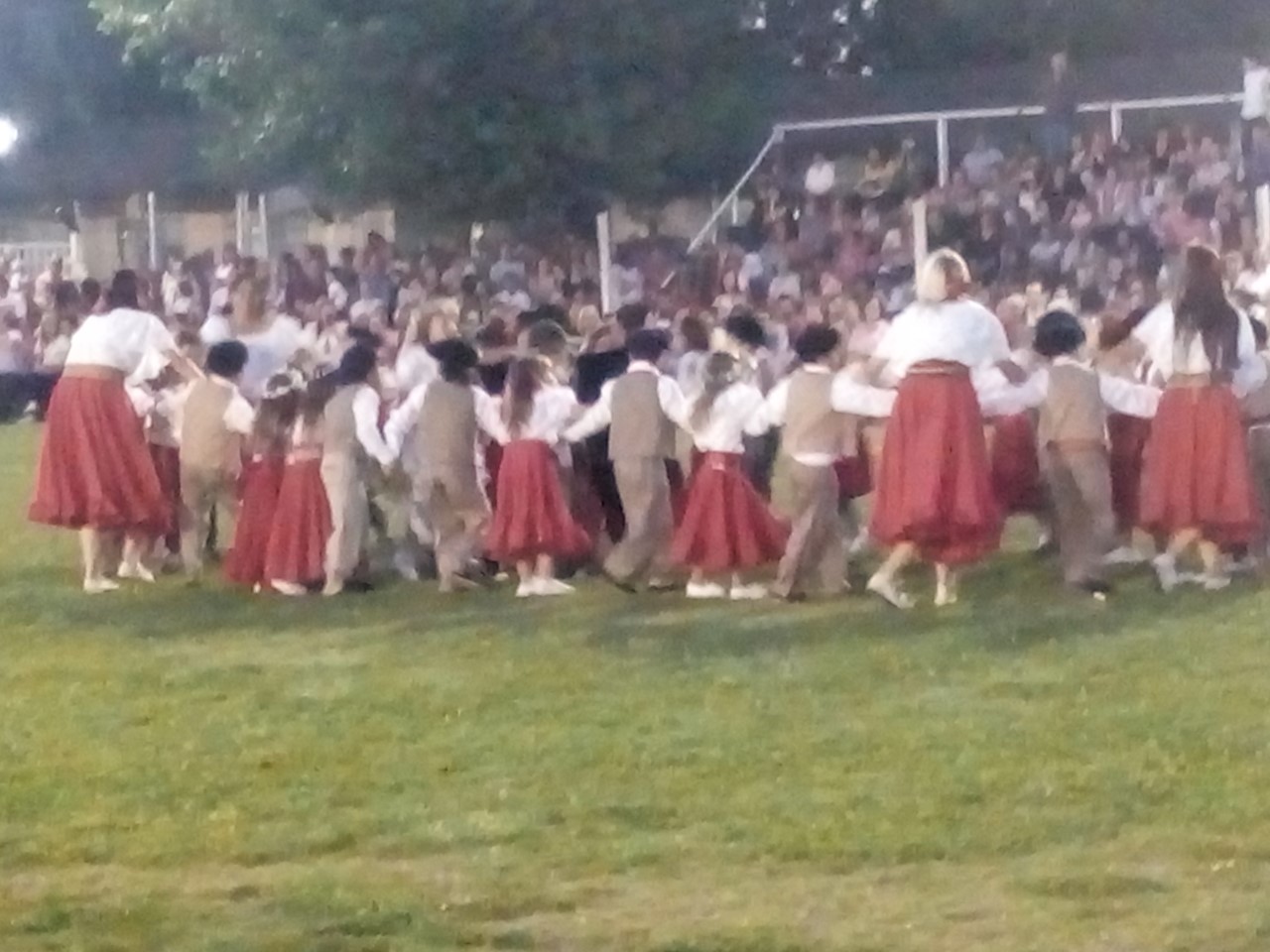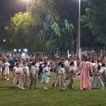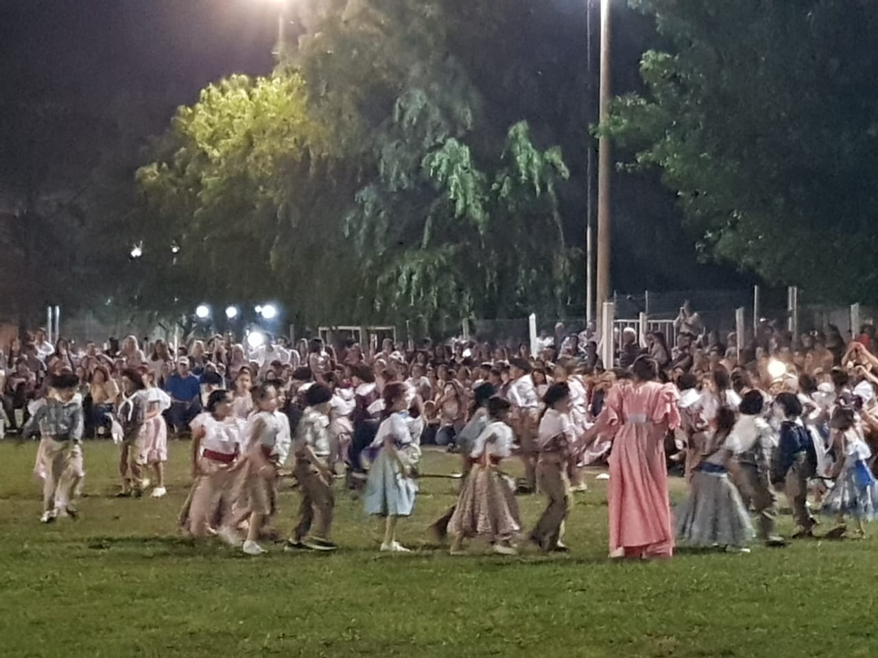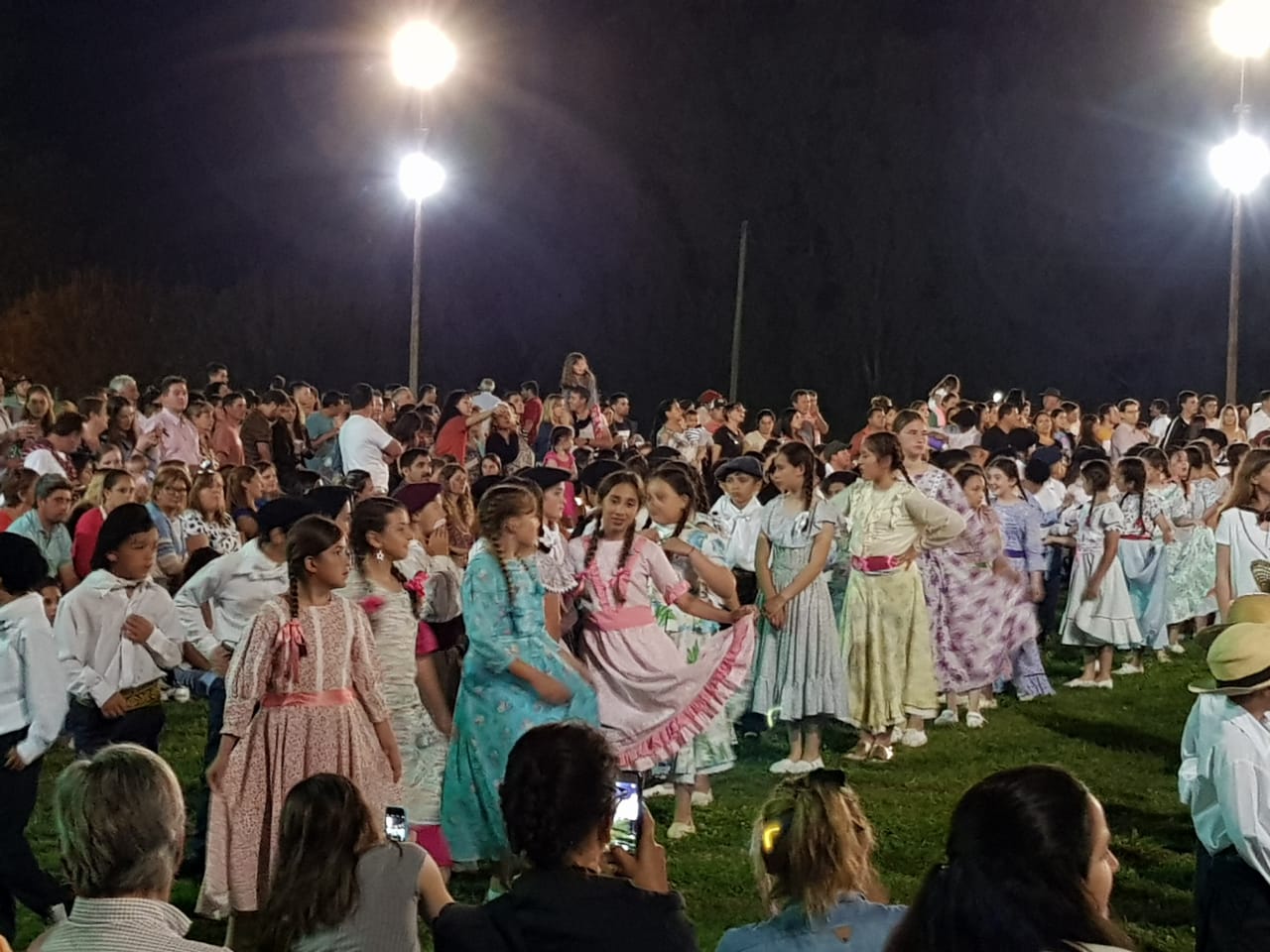 Al llegar la hora de la fiesta, sonó una linda chamarrita y la pista de baile se abrió, luego comenzaron a asomarse los bailarines de todos los grados , algunos con sombrero , otros con boina, pañuelos al cuello; vestidos y polleras coloridas, hermoseaban a las paisanitas, todos con ganas de bailar chamamés acompañados de palmas y algún que otro sapucay .