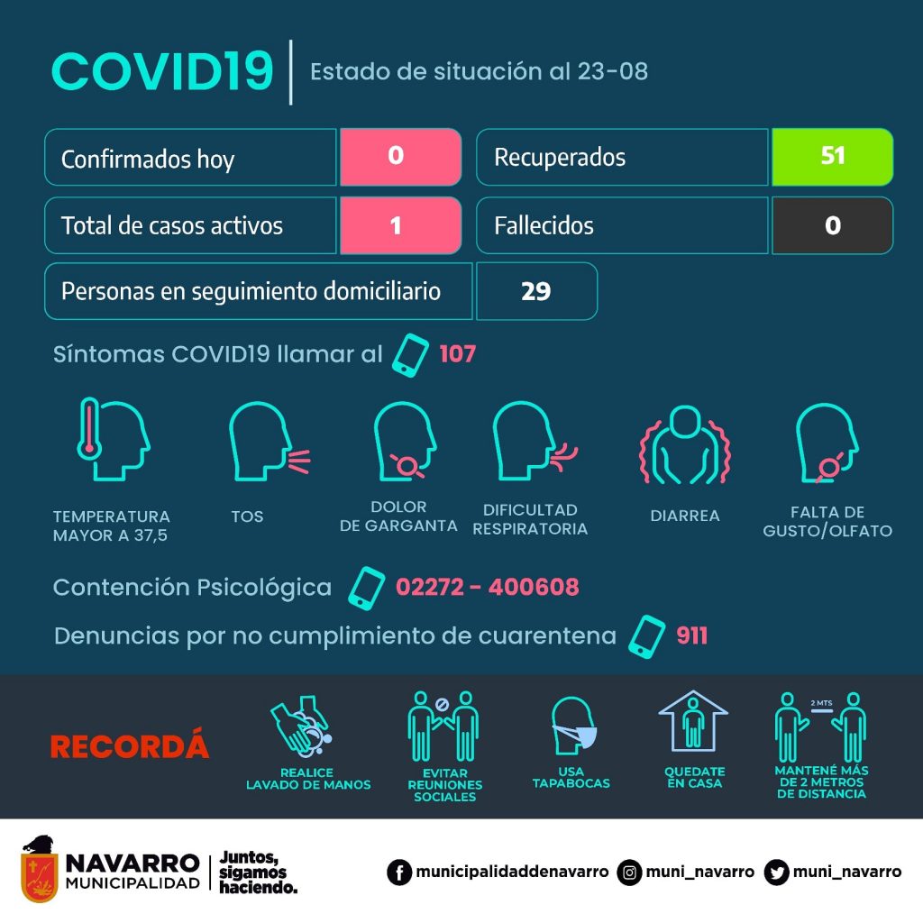 ? *Desde el último reporte emitido, se registraron 38 nuevas muertes*. A continuación detallaremos los 137 fallecidos de las últimas 24 horas. 92 hombres, 67 residentes en la provincia de Buenos Aires; 5 residentes en la Ciudad de Buenos Aires (CABA); 2 residentes en la provincia de Córdoba; 1 residente en la provincia de Mendoza; 4 residentes en la provincia de Río Negro; 1 residentes en la provincia de Santa Fe; 1 residente en la provincia de Corrientes; 1 residente en la provincia de Tierra del Fuego; 9 residentes en la provincia de La Rioja; 1 residente en la provincia de Salta; y 45 mujeres; 37 residentes en la provincia de Buenos Aires; 3 residentes en la Ciudad de Buenos Aires (CABA); 2 residentes en la provincia de Santa Fé; 1 residente en la provincia de La Rioja; y 2 residentes en la provincia de Mendoza. Al momento la cantidad de personas fallecidas es 6.985.