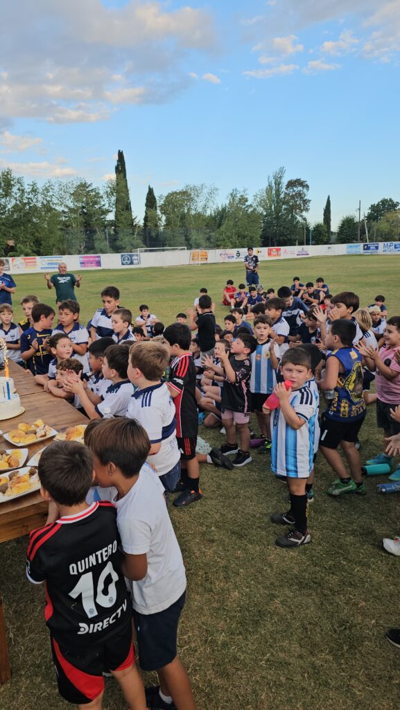La jornada tuvo además un cierre muy especial: todos los niños del club se reunieron en la cancha para festejar, donde compartieron una torta de cumpleaños y entonaron el tradicional “Feliz Cumpleaños”, celebrando juntos un nuevo aniversario de la institución.
