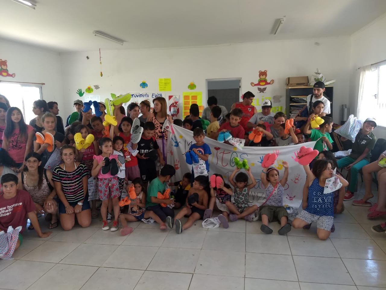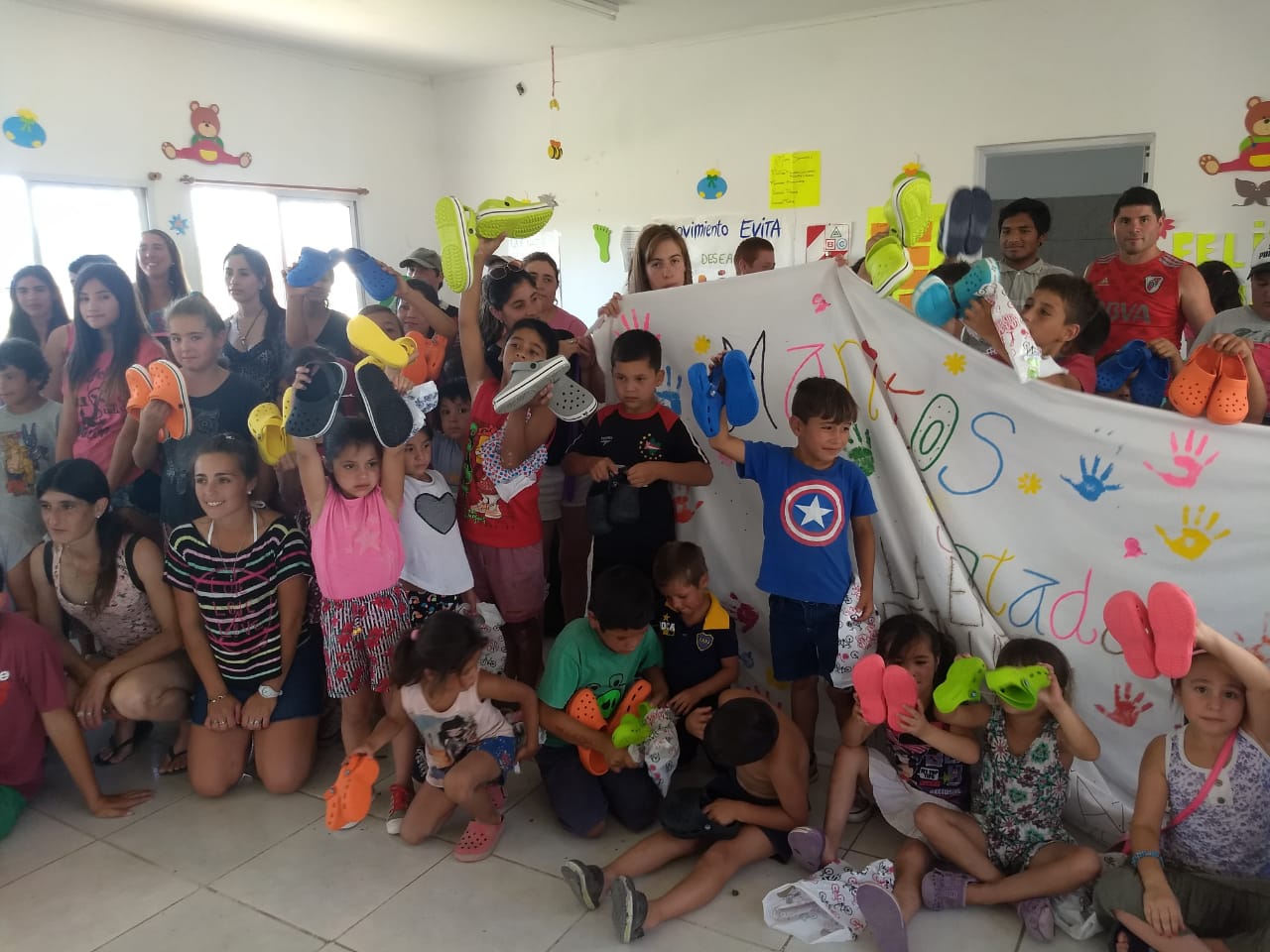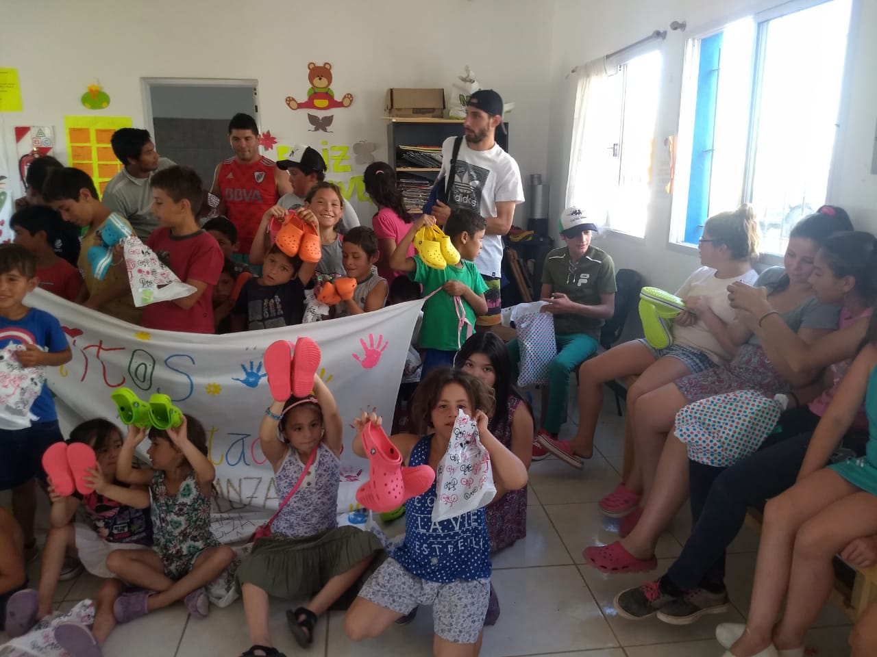 Los niños de los merenderos «Manitos Pintadas y «De Luz» recibieron en la víspera de Nochebuena, el regalo de las zapatillas playeras que se observan en las imágenes.