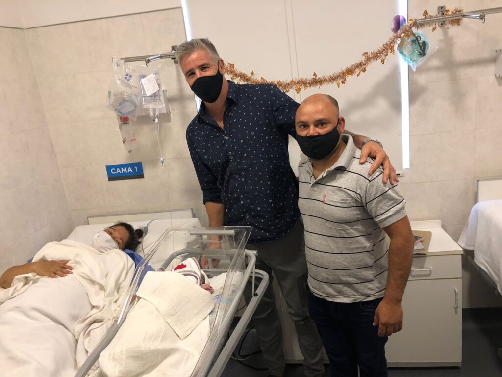 El intendente, Facundo Diz, el jefe de Gabinete, Diego Barrado, y el Dr. José Huamán de la Cruz, saludaron al pequeño Lian y a su familia en la mañana de este jueves.