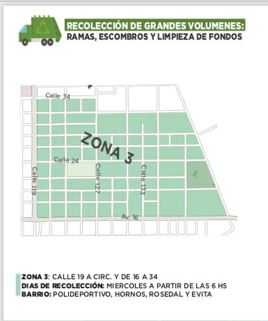 Se comunica a los Sr/a vecinos de ZONA 3 , que en el día de HOY pueden sacar RAMAS, ESCOMBROS, LIMPIEZA DE FONDOS.