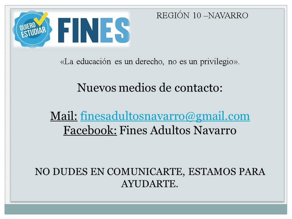 Actualidad, EducaciónInformación sobre el programa FInEs Posted on 3 septiembre, 2020 by Roberto Gómez 03 Sep Roberto Gómez Covid-19: Hay19 casos positivos más, hoy en Navarro Informe semanal de la Secretaría de Asuntos Docentes