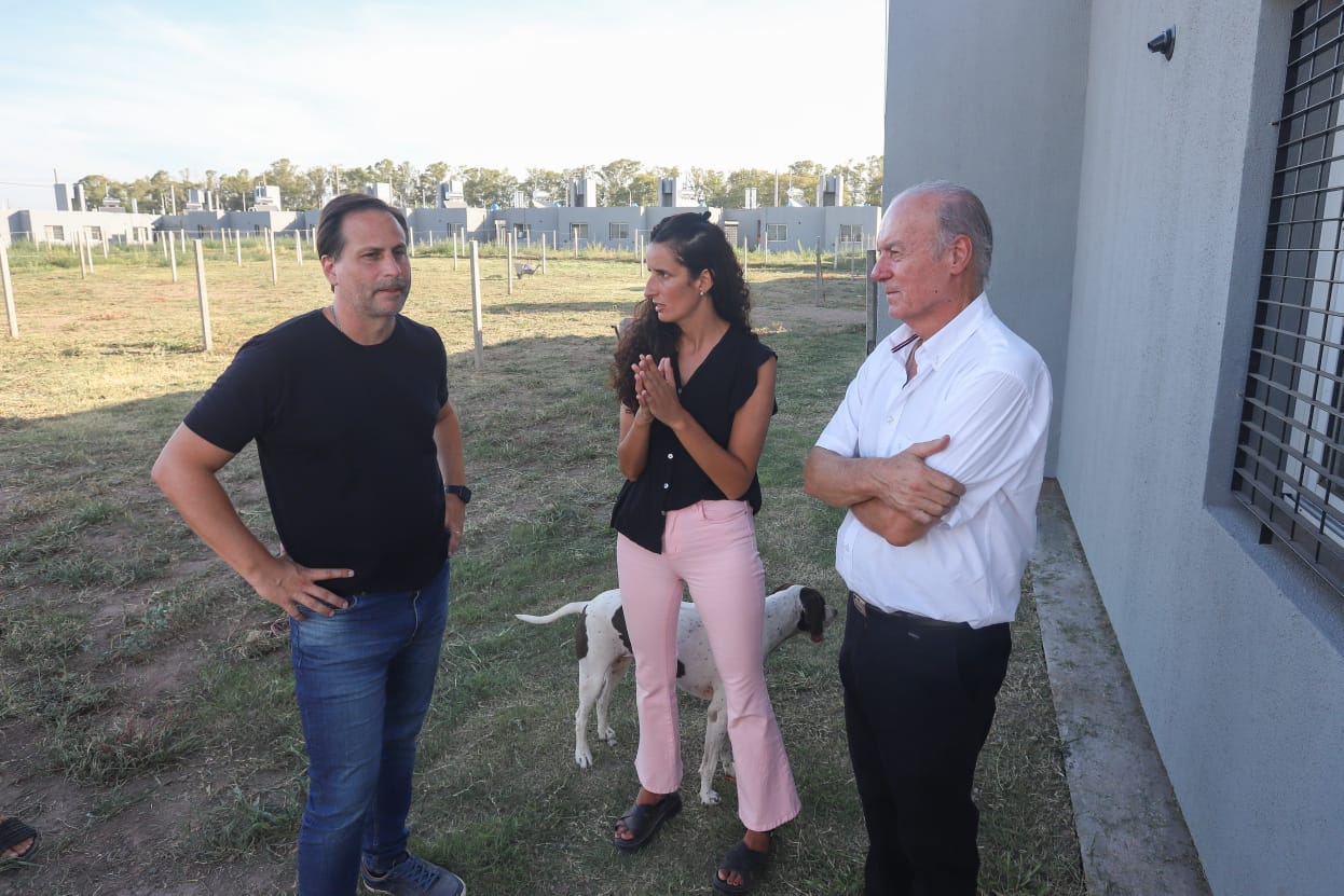 Finalmente, Villaverde y el secretario de hábitat santafesino se hicieron presentes en la zona donde se ejecutan otras 30 viviendas Casa Propia en dos predios de la comuna General Lagos. Allí estuvieron acompañados por el jefe comunal local, Esteban Ferri, y la subsecretaria de Gestión del Hábitat de la provincia, María Cortopassi, junto a quienes además recorrieron el lugar donde se están levantando viviendas pertenecientes a un Desarrollo Urbanístico Procrear II.