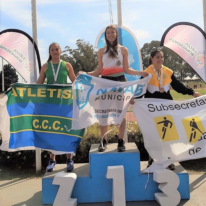 Luisiana Polenta, logra el tercer oro para Navarro y se consagra tetracampeona de los Torneos Bonaerenses. En este caso, en lanzamiento de la bala, sub 18, con 12.60m.