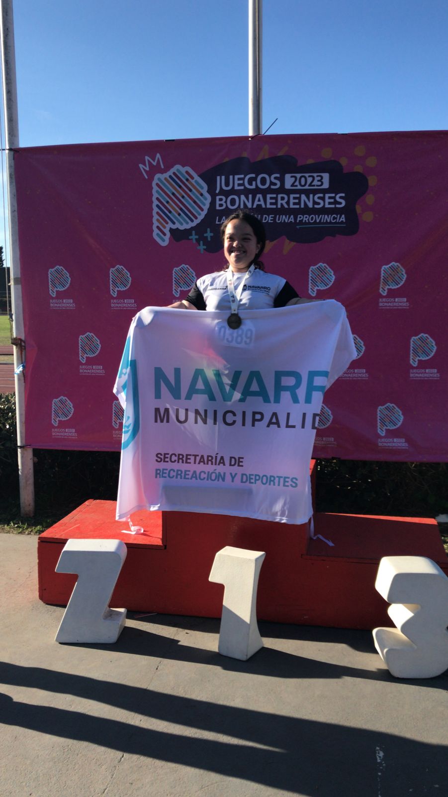 En su debut en los Juegos Bonaerenses, la atleta de la escuela municipal consiguió el oro en el lanzamiento de la bala motor 40/41 sub 15, dándole a Navarro la 2da medalla de oro y la tercera de toda la delegación.