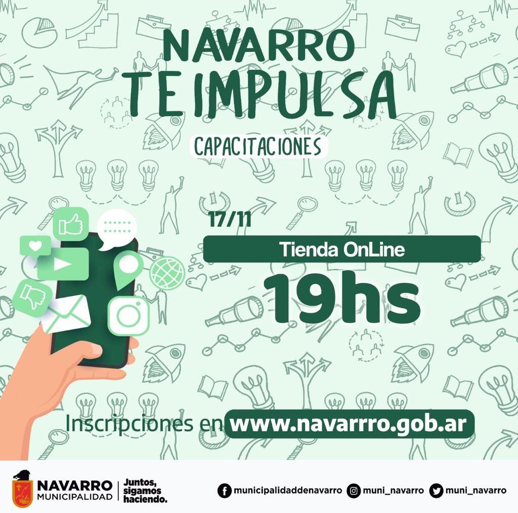 Actualidad, MunicipalesSeguimos con las capacitaciones en Navarro Te Impulsa! 🚀 Posted on 16 noviembre, 2020 by Roberto Gómez 16 Nov Mañana “Tienda Online” 📲 Encontrá más info sobre el cronograma de capacitaciones e inscribite en www.navarro.gob.ar Roberto Gómez Municipales: Primer día de gestión de Facundo y Santiago, en sus cargos Comienza la inscripción de aspirantes a la casa de estudiantes de Navarro en la Localidad de La Plata